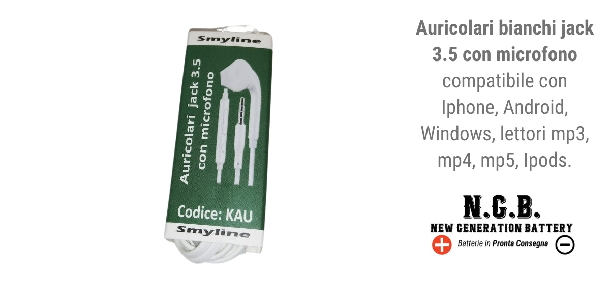 Auricolari Bianchi Jack 3.5 con Microfono Compatibili con Iphone - Android - Windows - lettori mp3 - mp4 - mp5...