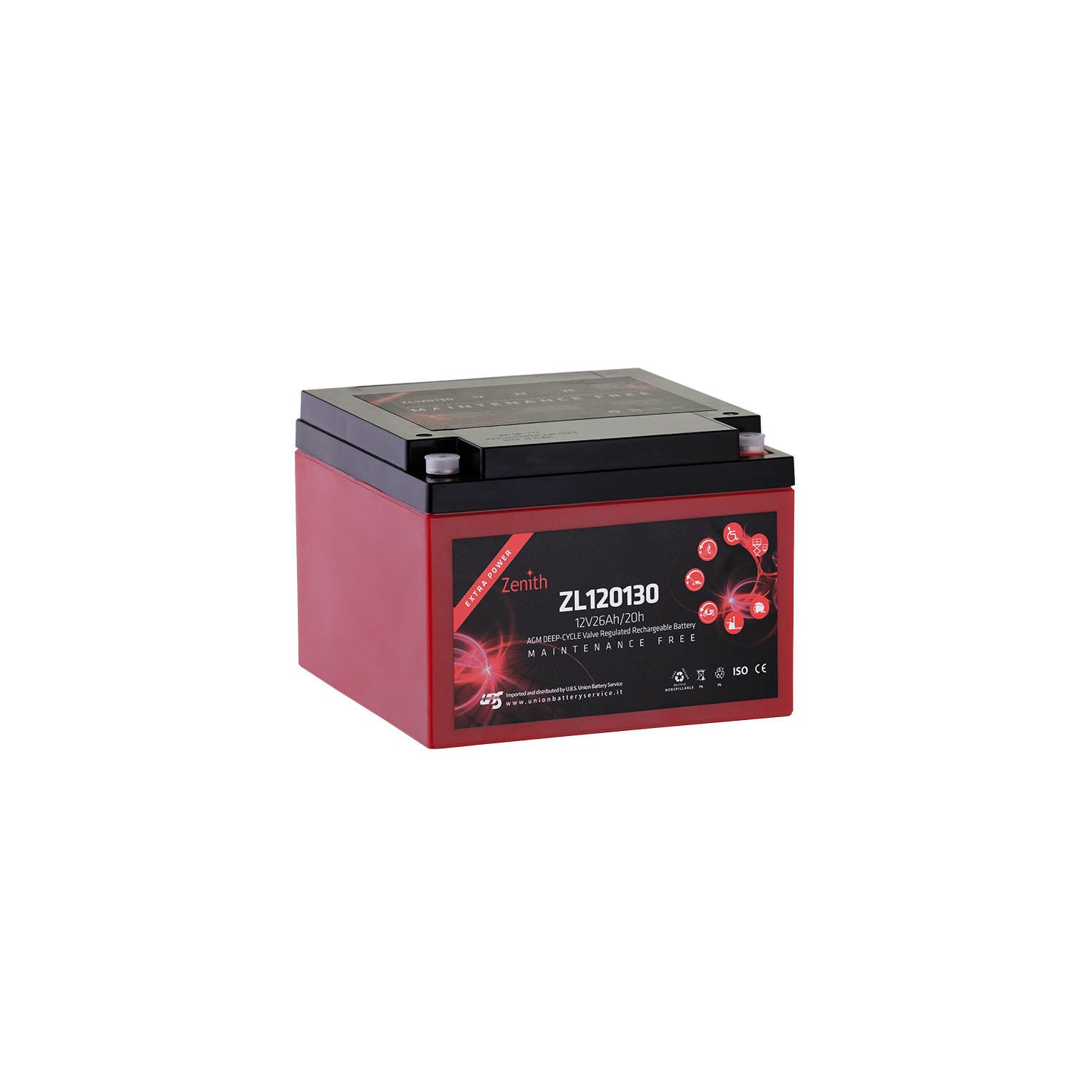 Batteria Zenith sigillata Agm Deep-Cicle (uso ciclico) ZL120130 12V 26 AH/20HR Misure 165 X 174 X 167 mm - terminali...